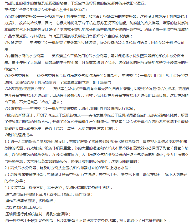 濟南銳博特機械設備有限公司是英格索蘭空氣壓縮機的授權代理商,代理銷售美國英格索蘭全系列的空壓機及后續(xù)處理設備。公司自成立以來,經(jīng)過公司全體同仁不斷努力,開拓創(chuàng)新,以優(yōu)良的技術、完善的售后服務,使得公司贏得了一個又一個的誠心客戶。我公司擁有多名專業(yè)的銷售及售后服務人員,為客戶提供空壓系統(tǒng)的售前、售中及售后的全方位優(yōu)質服務。另公司有多名具有英格索蘭壓縮機授權服務證書的服務工程師,能維修和保養(yǎng)國內(nèi)外各種品牌空壓機,公司各種國內(nèi)外品牌空壓機配件庫存齊全。