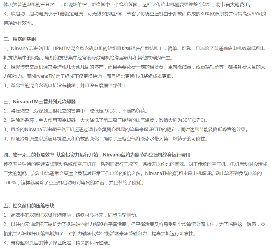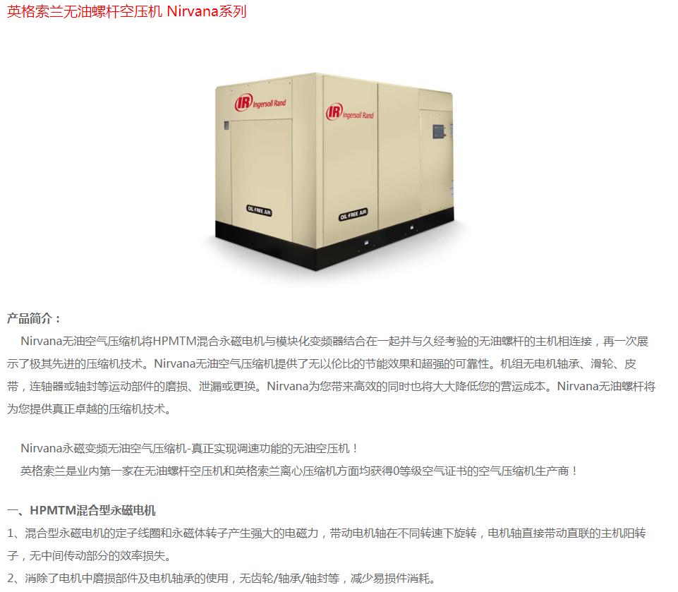 英格索蘭無油螺桿空壓機Nirvana
